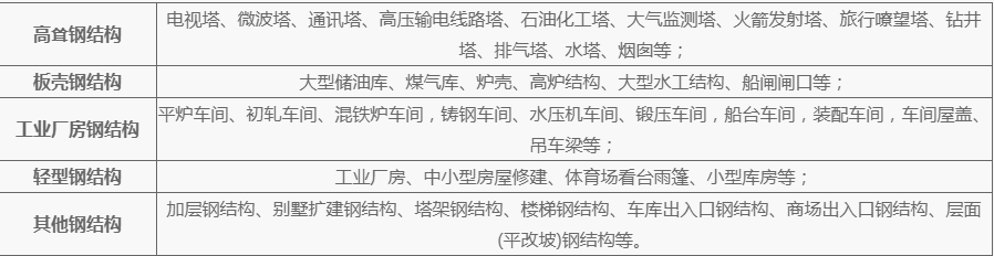 钢结构是由钢制材料组成的结构,是主要的建筑结构类型之一。结构主要由型钢和钢板等制成的梁钢、钢柱、钢桁架等构件组成,并采用硅烷化、纯锰磷化、水洗烘干、镀锌等除锈防锈工艺。各构件或部件之间通常采用焊缝、螺栓或铆钉连接。因其自重较轻,且施工简便,广泛应用于大型厂房、场馆、超高层等领域。钢结构容易锈蚀,一般钢结构要除锈、镀锌或涂料,且要定期维护。
